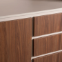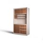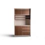 A coffee corner cabinet with open shelves, closed storage, and drawers. perfect for organizing your coffee essentials in a modern and compact design.
